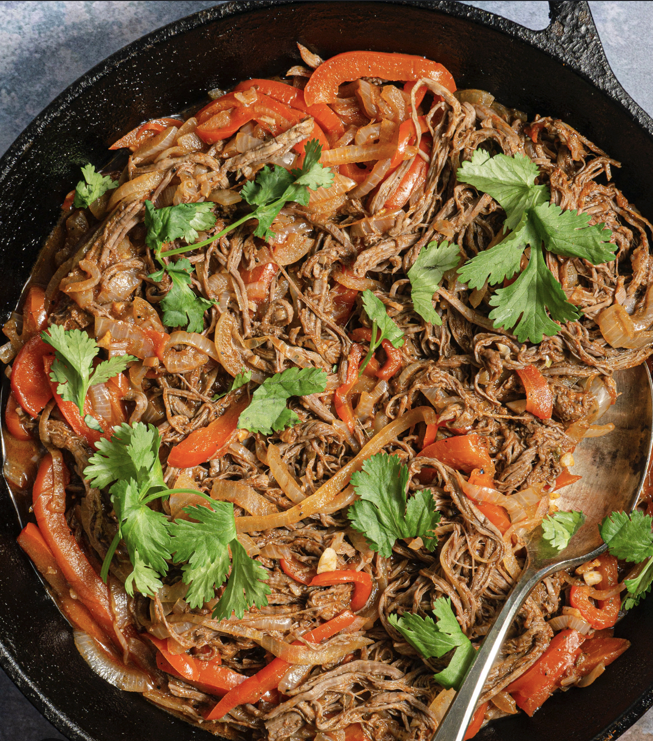 Ropa vieja with white rice, black beans, sweet plantains. Individual package.